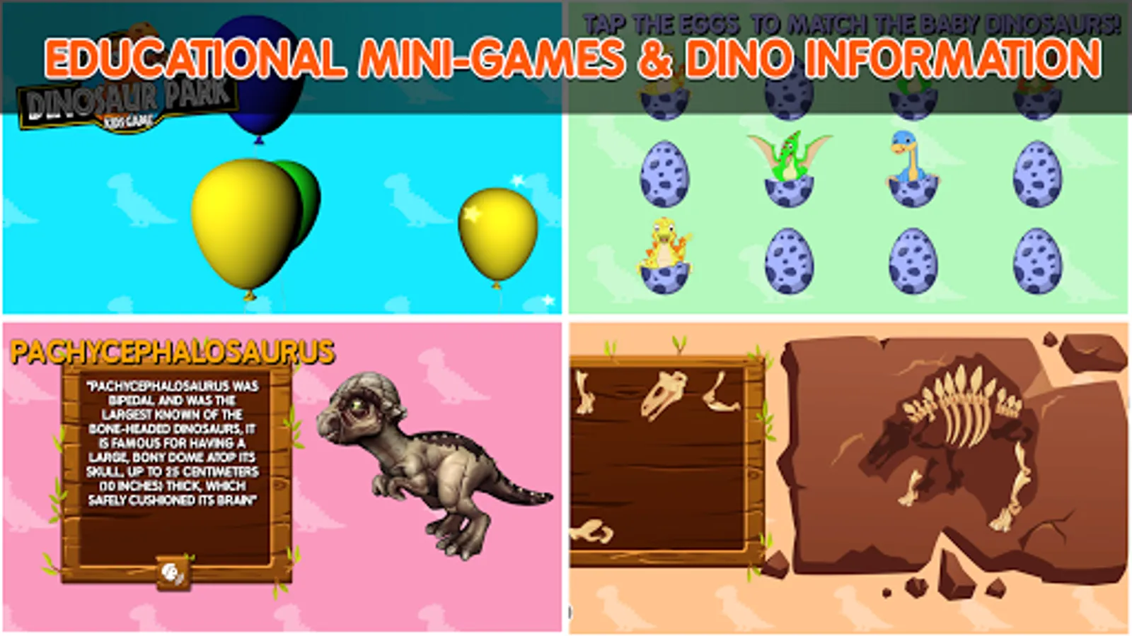 - Mini games including balloon pop, fossil bones puzzles and Match the eggs