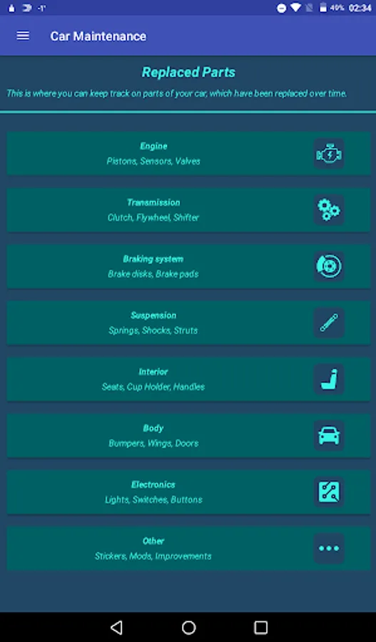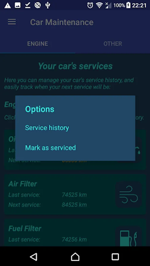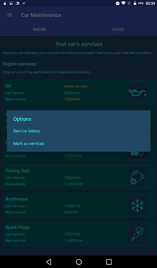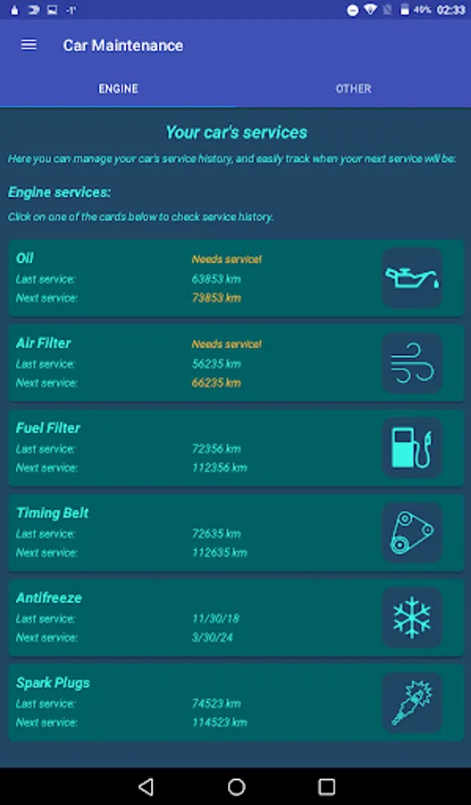 - Car Maintenance is an application which helps you monitor your car's service needs and history, take care of service dues on time and more.