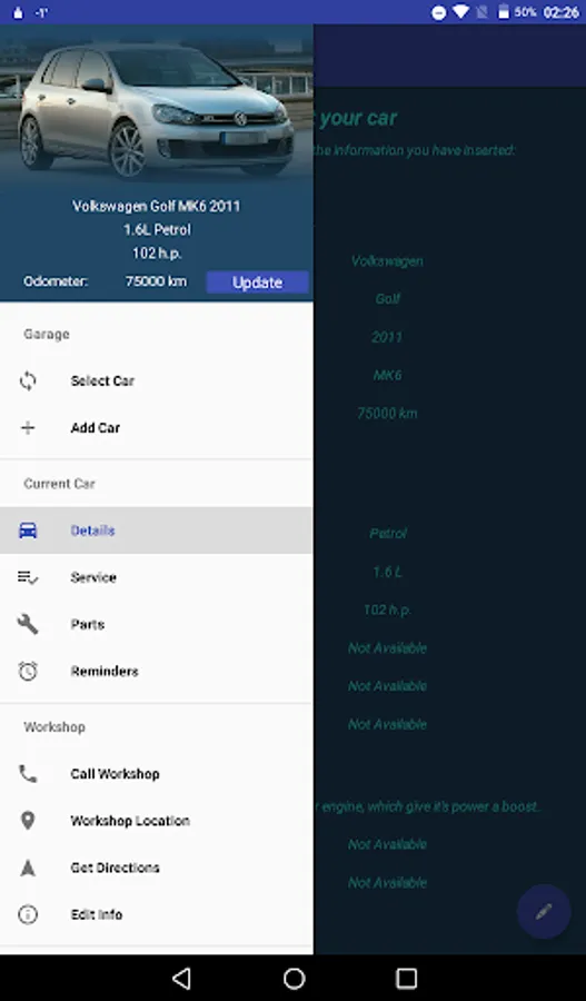 - This application has reminders in it to remind you of tax and insurance or any other responsibilities that need to be remembered. It also has the option to call, locate and navigate to your local workshop with a click of a button.