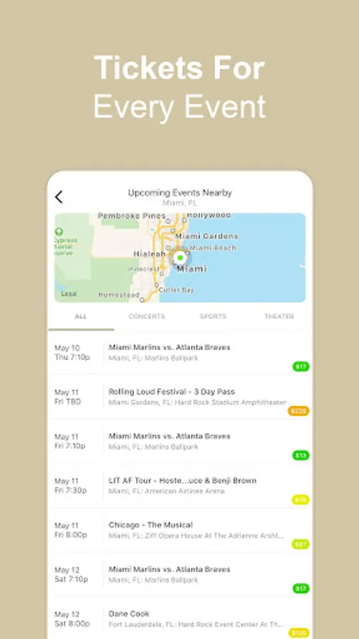 We want to make ticket buying affordable & super easy. See what's happening in your local area, or search for your favorite artist or sports team. Use our interactive seat map to find the perfect seats & the perfect tickets. There are no ticket fees & we don't charge for delivery. Once you've completed your order, your tickets are delivered instantly to your phone - so you're ready to go! Easy.
