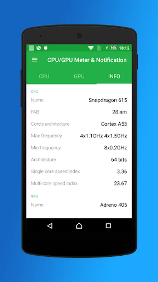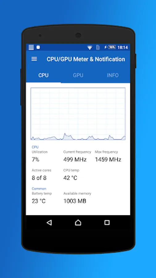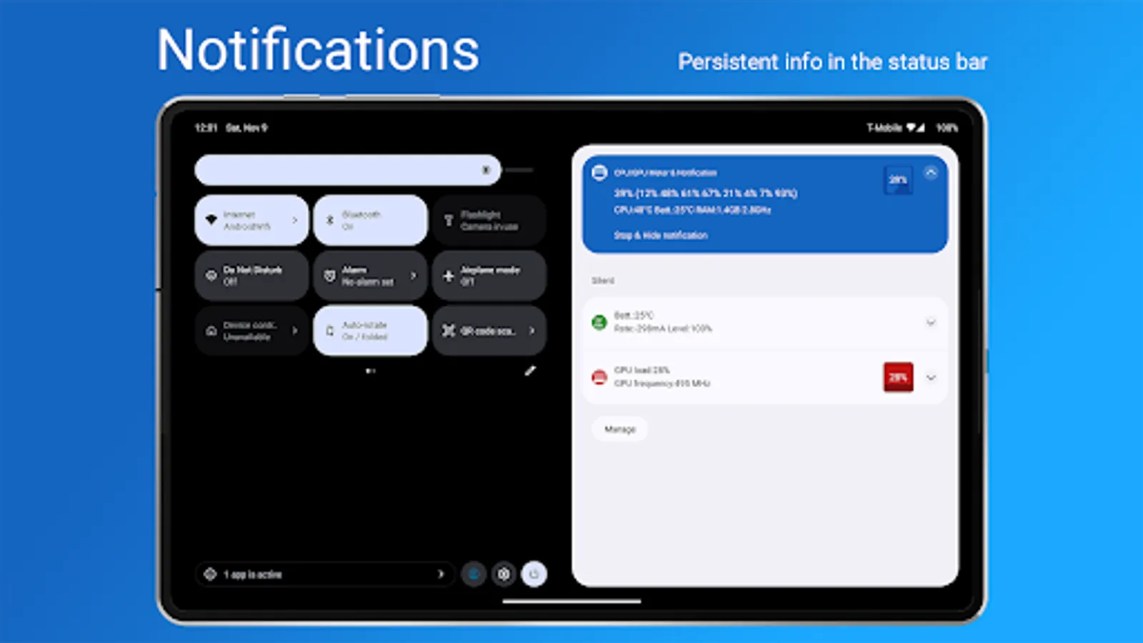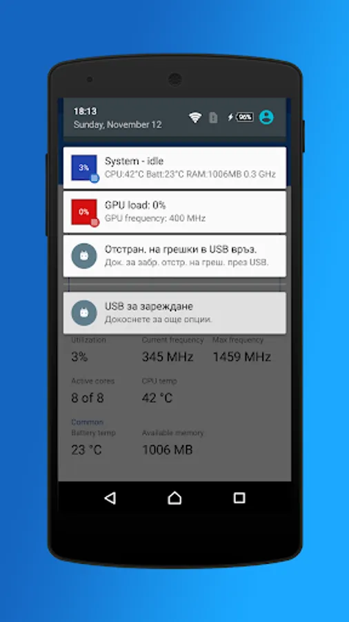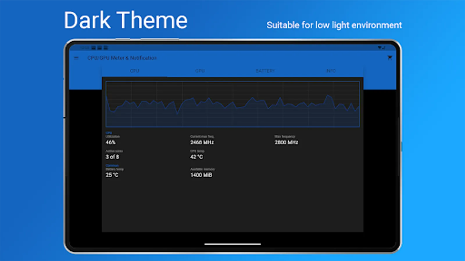 With help of this CPU/GPU/Battery Monitor & Notification you can have all this data as permanent notification and you can access it in a single swipe.