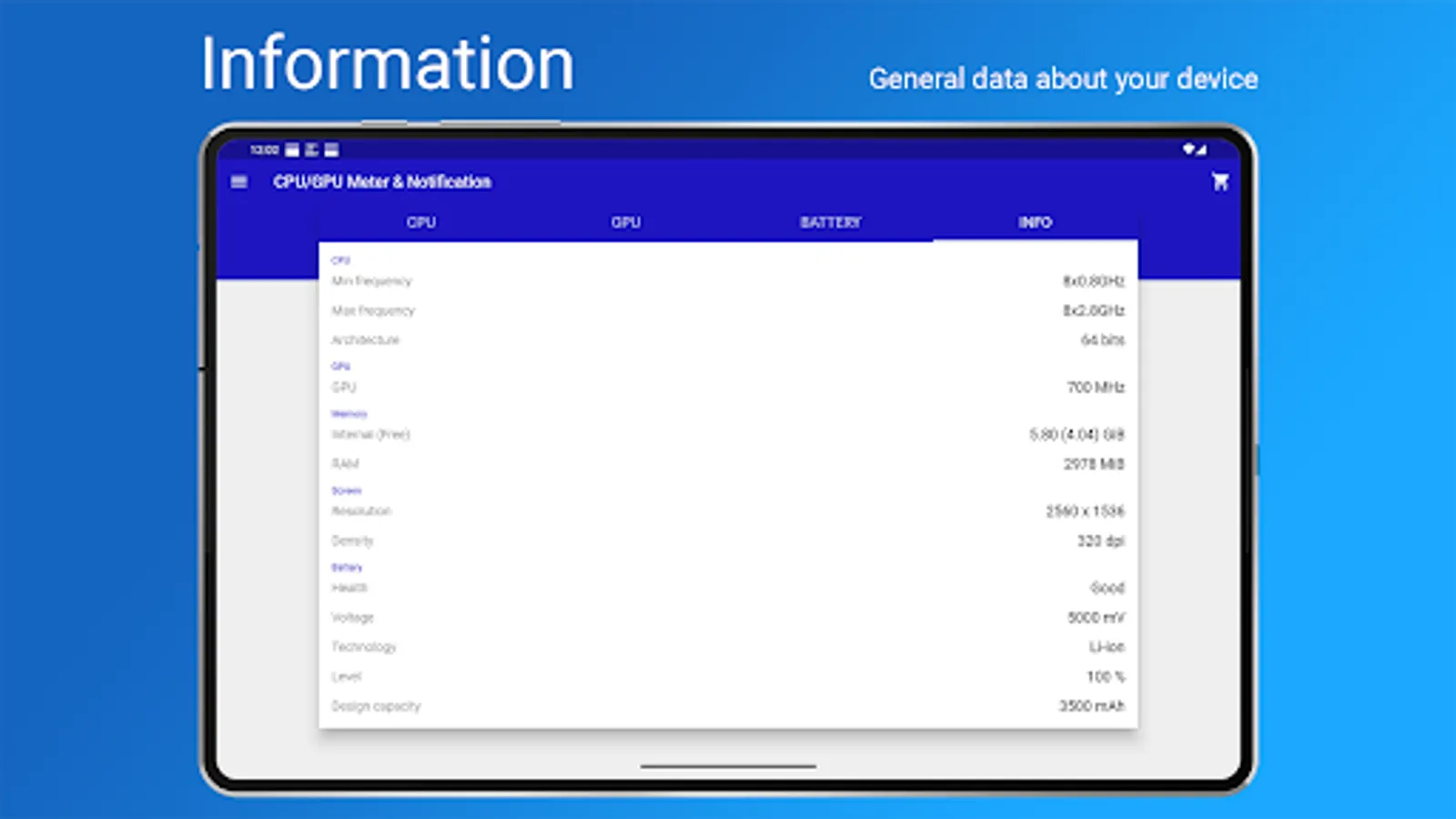 Have you ever wondered what is your CPU or GPU doing now, how much battery current is, what is battery's health, what are the temperatures of your CPU or GPU or Battery, how much memory is currently available and so on? Usually to do this you have to quit your app and switch to other app to see this data. But by the time of switching data is already irrelevant!