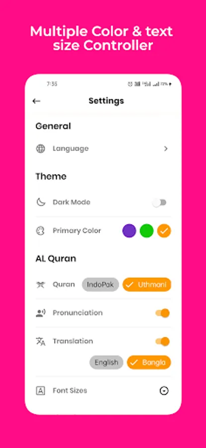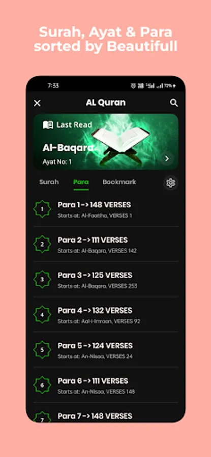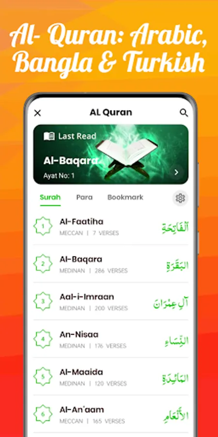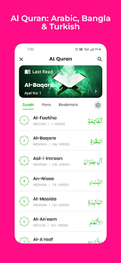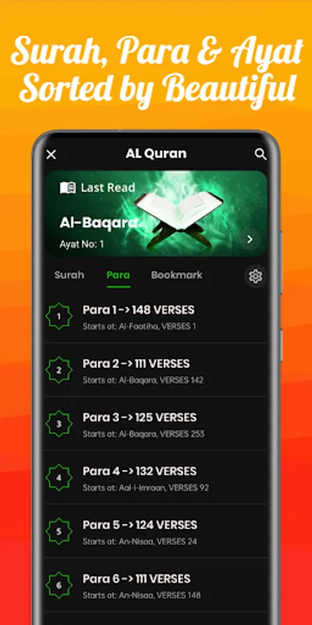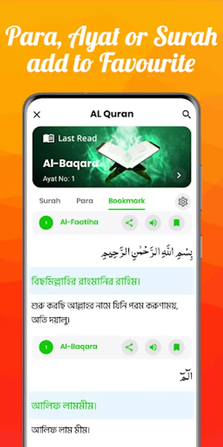 পছন্দের সূরা বা আয়াত বুকমার্ক করে রাখা যাবে।