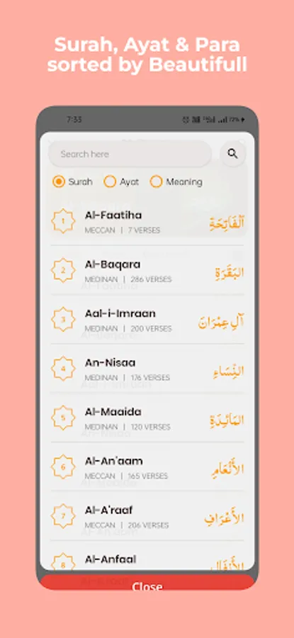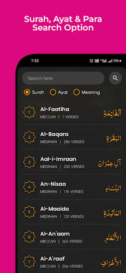 যে কোনো সূরা বা আয়াত হুব সহযেই সার্চ করা যাবে।