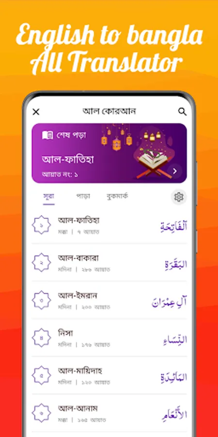 ✔ 114 sura and 30 para with bangla meanings and pronunciation.