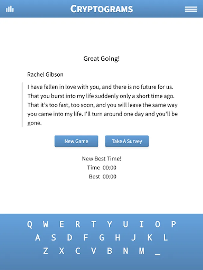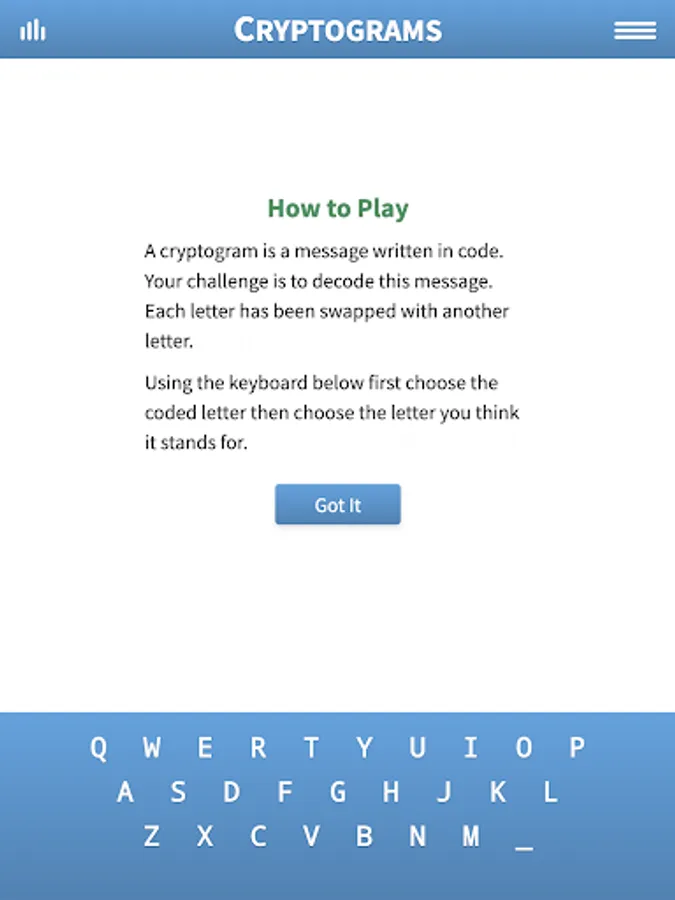 Enjoy Cryptograms, a fun puzzle game from Razzle Puzzles where the goal is to decrypt famous quotes! If you like interesting quotes and word puzzles, you will love Cryptograms!