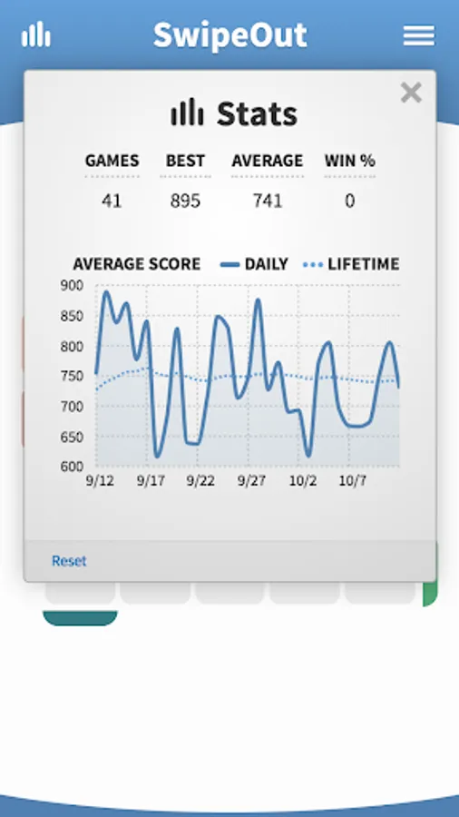 Track your top and average SwipeOut scores over time with our stats tracker.