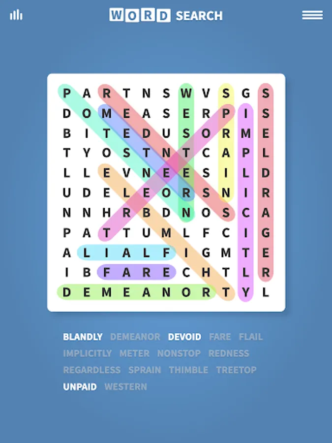 Enjoy Word Search, the classic puzzle game with thousands of fun puzzles! Try our unique hard and expert word search modes!