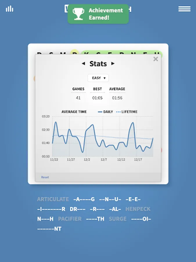 Track your best and average game times over history with our stats tracker.