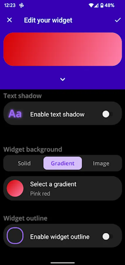 Widgets created are fully customizable from text color to fonts and with custom background image.