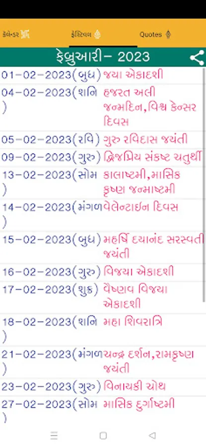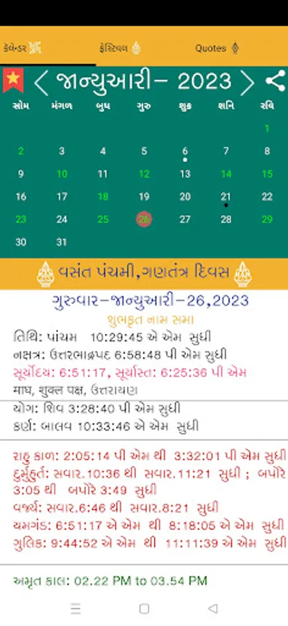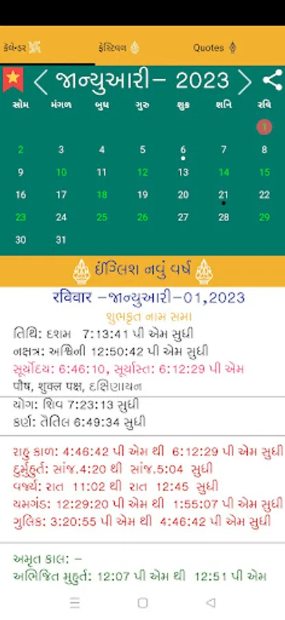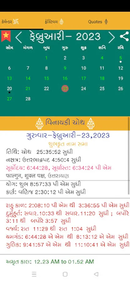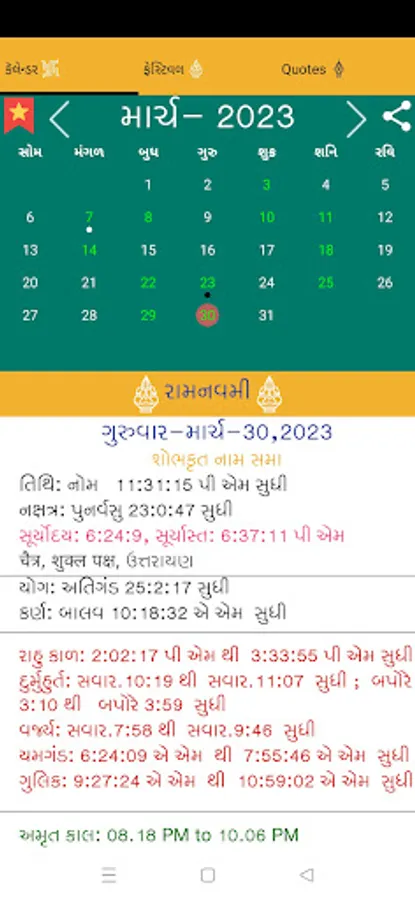 Our gujarati calendar 2023 will provides the month wise calendar with daily basis information of the day. This app is useful for all gujarati people who wants to get the information of festivals and many more.