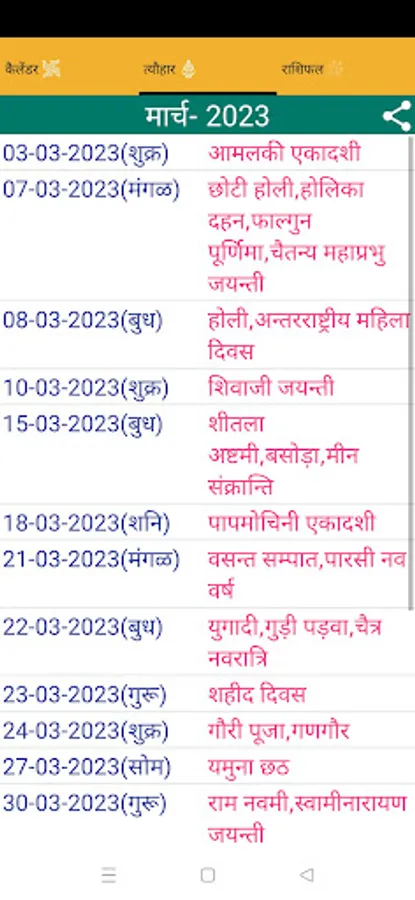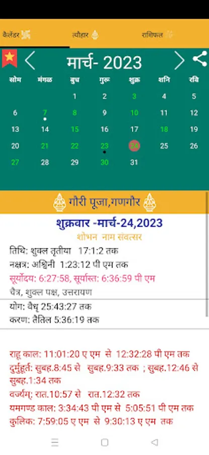 Our hindi calendar 2023 will provides the month wise calendar with daily information of the day. This app is useful for all hindi people who wants to get the information of calendar, festivals and many more.