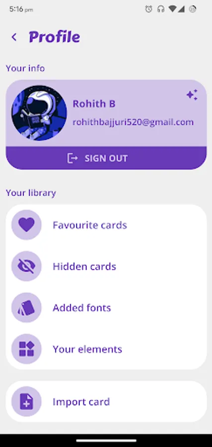 Cards created are synced directly to your account, so you can access them anytime without worrying any loss of cards.