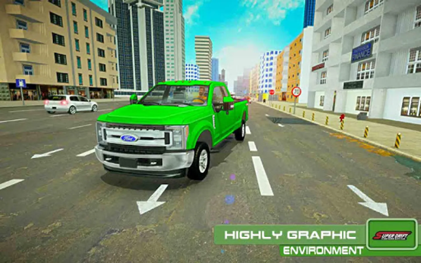 Drive Luxury Super Car: Ford F250 with Real cardrifting Physics. In all over the world most car lovers wants the best models of luxury sports cars with realistic car physics. The wait is over Ford F250 Super Car: Speed Drifter is the best car driving game with high quality super cars models including Volkswagen Golf, Honda NSX, Aston Martin Vanquish S, Bugatti Veyron, Ferrari Berlinetta F12 TRS, Ford F250 which can be purchased by in game coins. Enjoy Day & Night cycle with huge open world environment and perform speed drift in city.