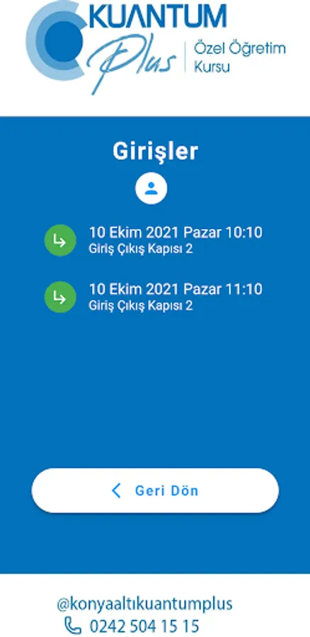 You can see the entries and exits of the students. Parents who have students studying in Quantum plus educational institutions can follow the school entry and exit times of their parents through our application with instant notifications or the menus in the application.