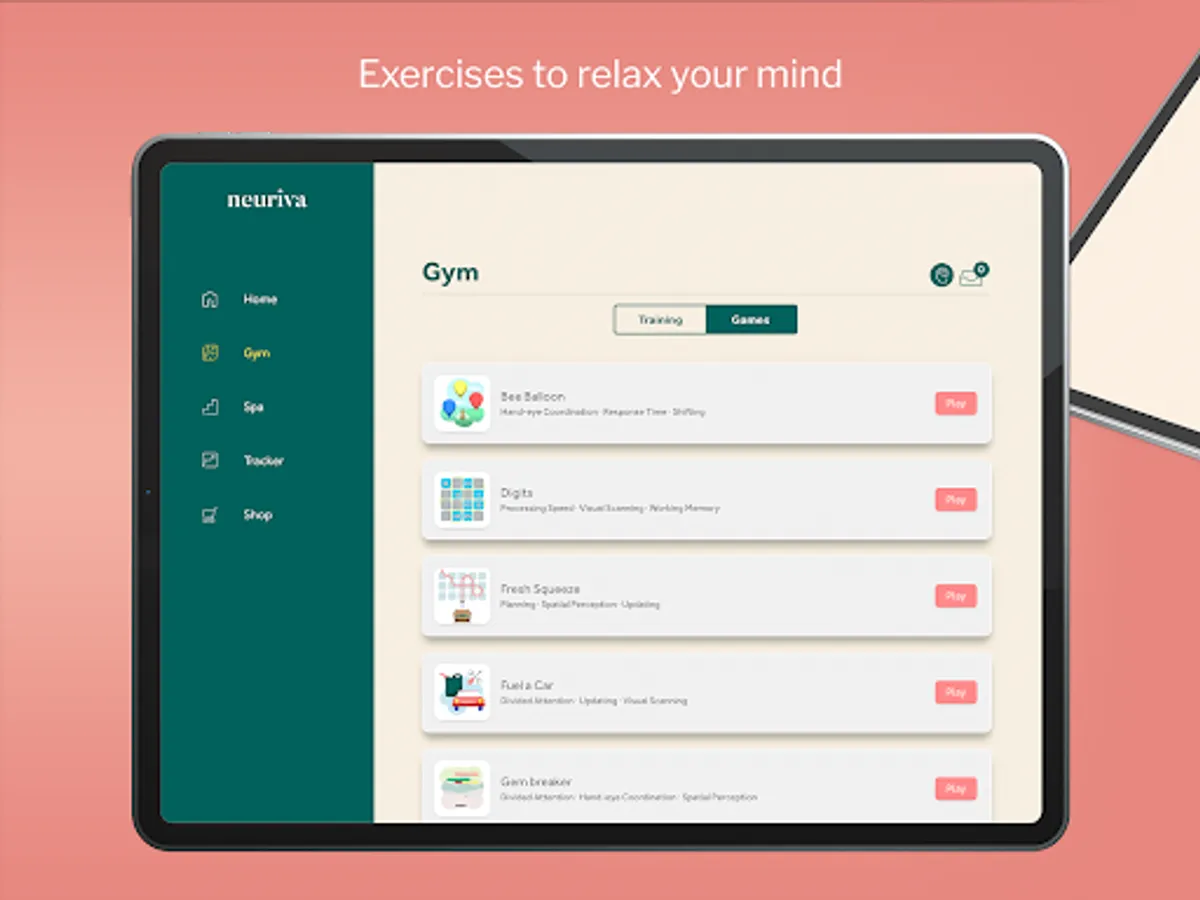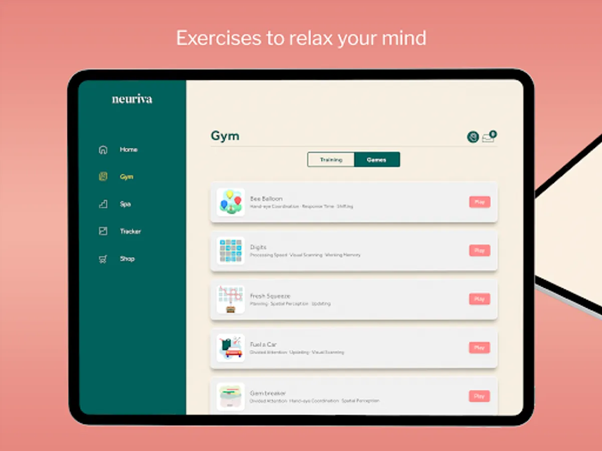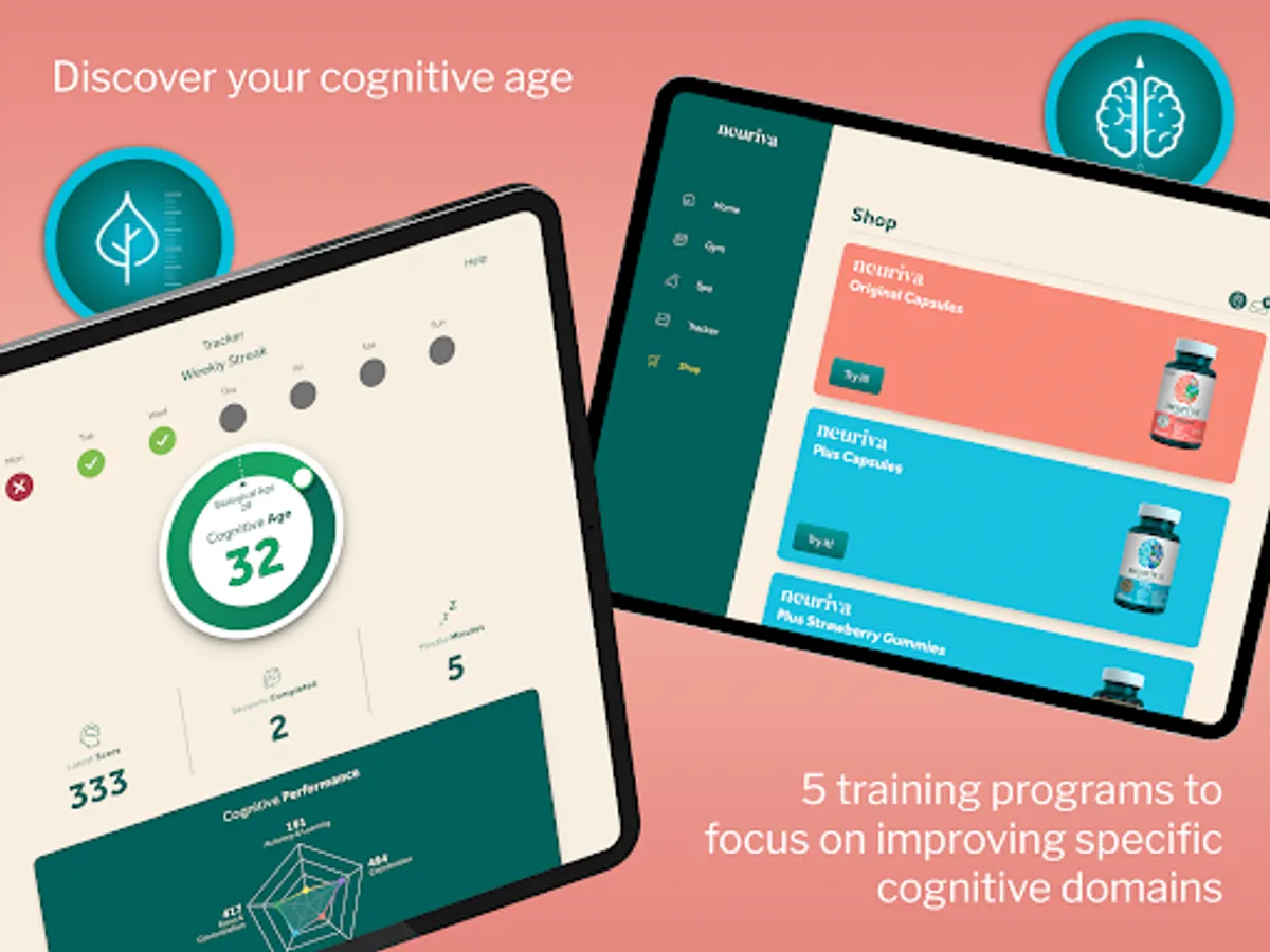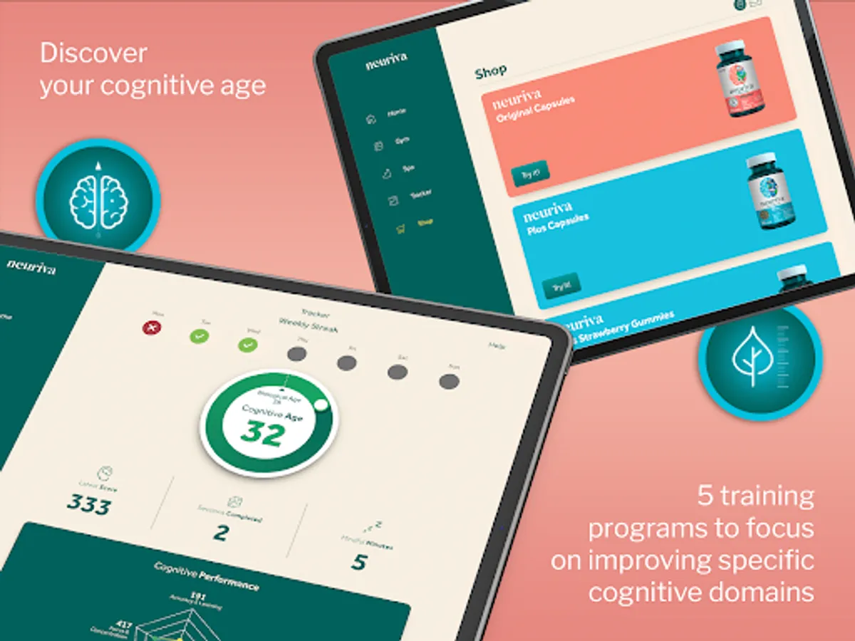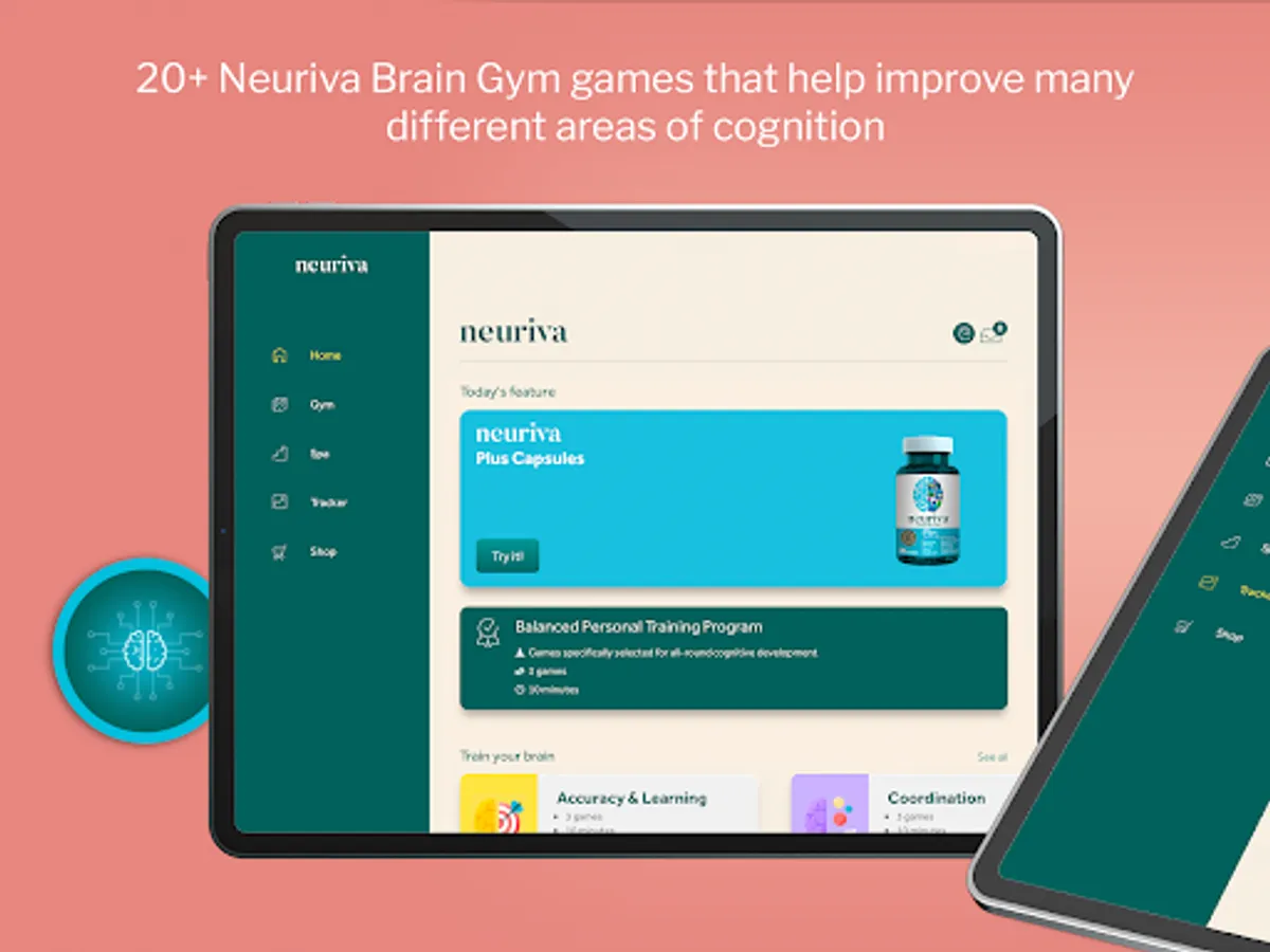 ● 20+ Neuriva Brain Gym games that help improve many different brain areas