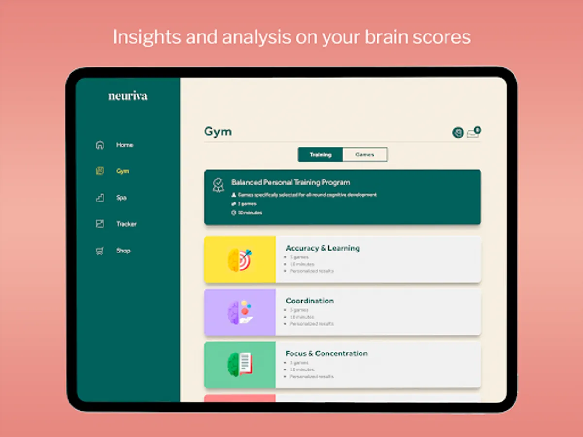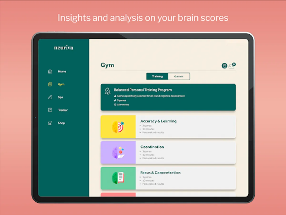 Here at Neuriva, we know that no two brains are alike. That’s why our Neuriva Brain Gym has been designed to customize your brain training experience specifically for you and your brain’s needs.
