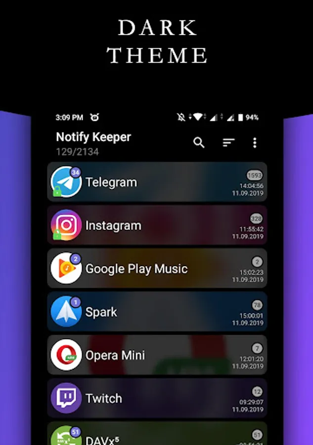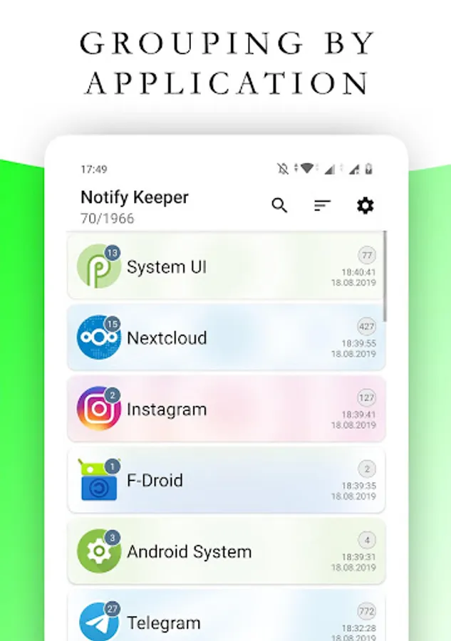 Note: You cannot see the notifications you received before installing this application (only if they still in the status bar).