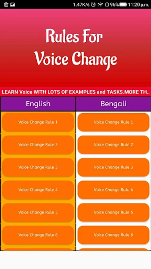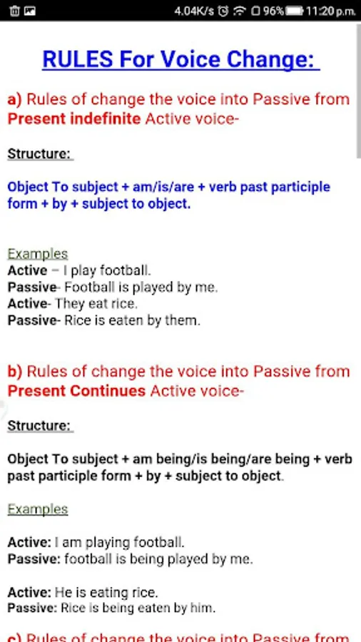Active voice passive voice Converter is a very powerful app for learning voice in English grammar. There are 15 rules for learning voice change. Through this app, it is clearly described to understand voice. This is the best design for voice change app. It contains a lot of examples with rules. There are 15 rules for voice which is clearly given with examples. One can easily understand Tense and Active voice passive voice through this App. Speaking and Writing English will be very easy by learning Tense. Download this App and enjoy your Tense learning.