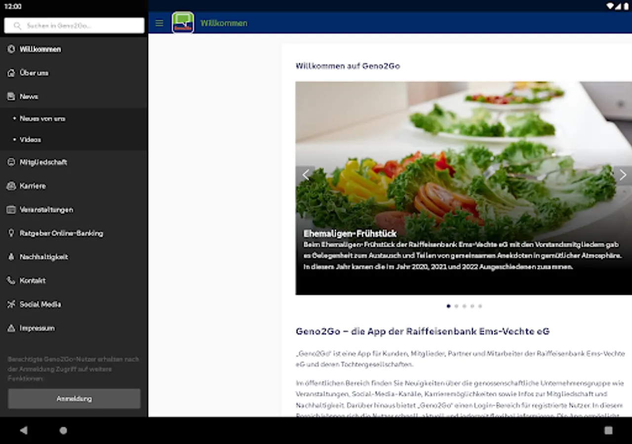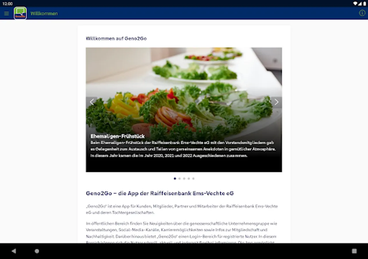 "Geno2Go" is an app for customers, members, partners and employees of Raiffeisenbank Ems-Vechte eG and its subsidiaries. The cooperative