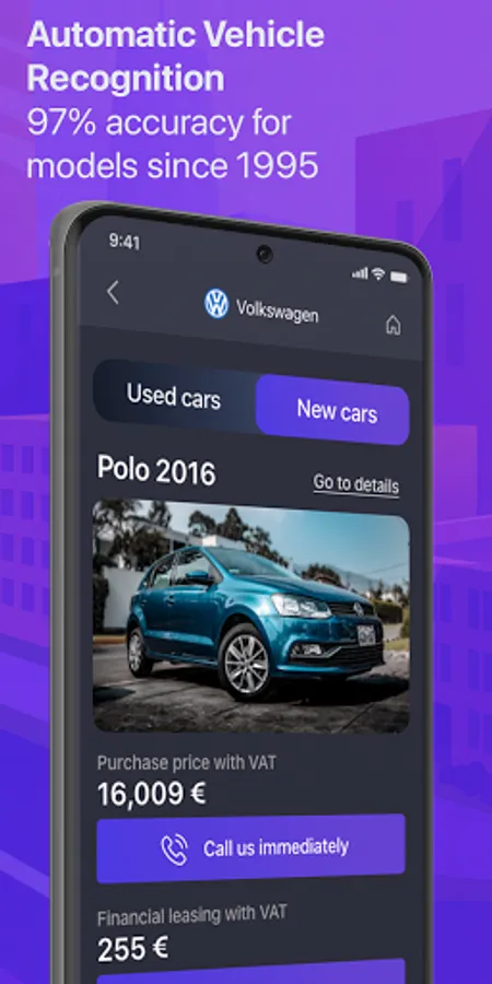• Automatic vehicle recognition from photo (camera or gallery)