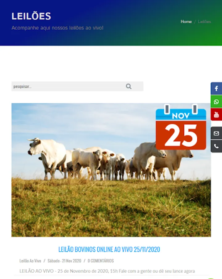 Follow upcoming events (auctions), our showcase with available products and learn more about Cattle, Sheep, Goats, Horses and Swine Auctions.