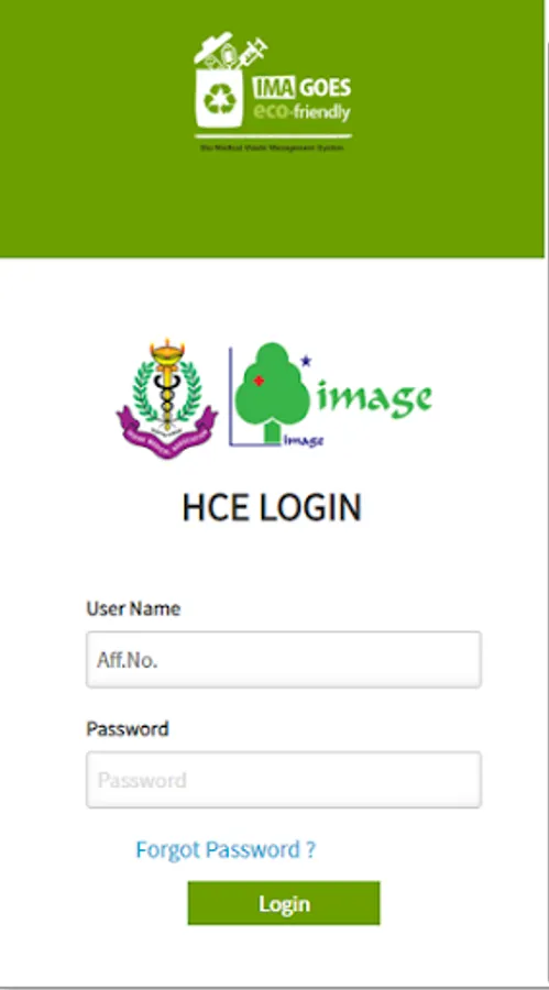 Indian Medical Association Goes Eco-Friendly or IMAGE 's Health Care Establishment's (HCEs) mobile app to manage the Bio-Medical Waste collection and other transactions.   With this App, HCE can login and manage the entire process of Bio Medical waste disposal process managed by IMAGE.