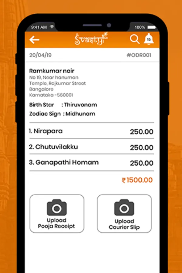 SVASTY Vendor application is a platform for Svasty associated Temples and vendors to view and process the respective orders they have received from devotees. To authenticate the transaction, we share temple’s original puja receipt with devotees after booking. We thereafter collect Prasad from temple and deliver at devotee doorstep too. Devotees has the option to choose online for collecting Prasad from the temple directly, by producing the digital copy of the booking receipt received, at the temple counter. Offering is fulfilled, with Prasad being collected as per Hindu Dharma and thus attain SVASTY.