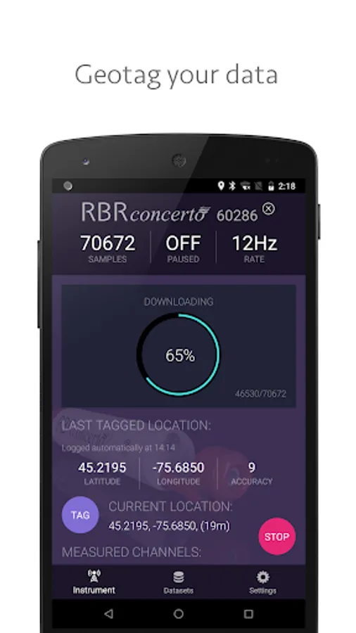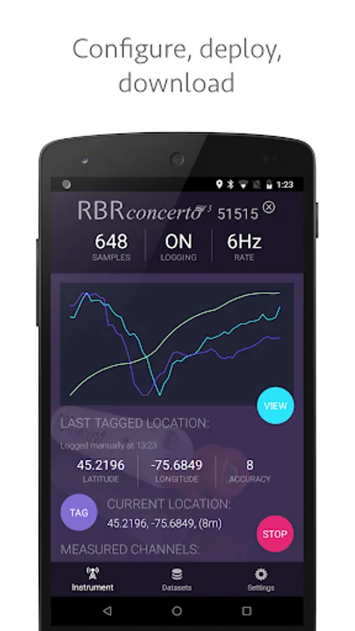 Ruskin lets you connect RBR oceanographic instruments to your Android device. Deploy and download without any cables or other computers.