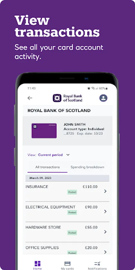 Royal Bank ClearSpend is available to eligible Royal Bank Business and Commercial Card account customers with compatible Android devices and a UK or international mobile number in specific countries. Over 18s only, other terms and conditions apply.