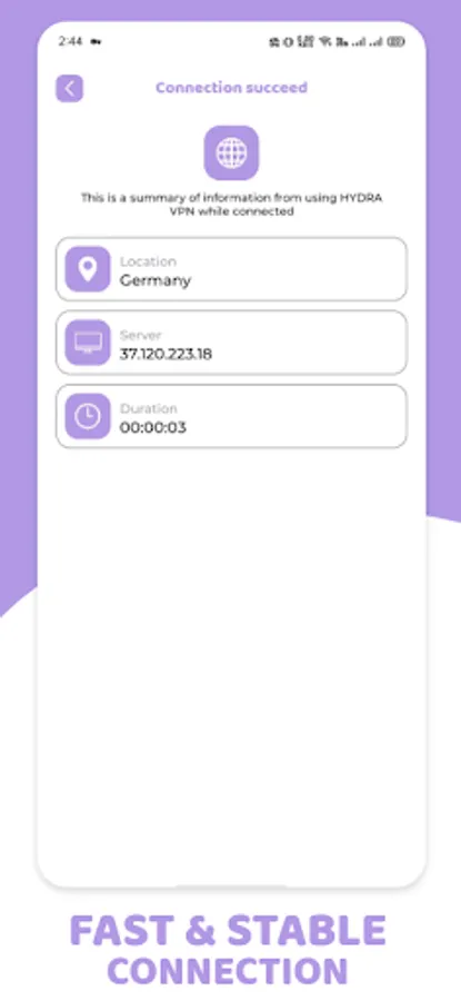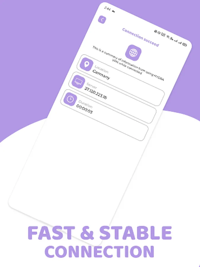 Hydra Anti-Theft VPN boasts an expansive network of servers strategically located across the globe. This not only guarantees blazing-fast internet speeds but also allows you to appear virtually anywhere in the world. Whether you're working remotely and need access to region-specific content or you simply value your privacy, this app lets you surf the web with a cloak of anonymity, giving you the freedom to explore the digital realm without leaving a trace. No matter where you go, Hydra Anti-Theft VPN is your companion to protect your online anonymity.