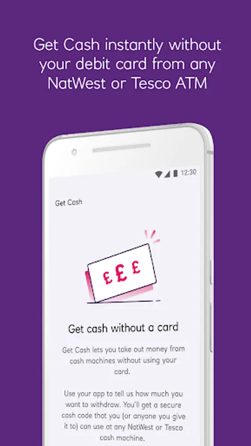 • Get Cash - Withdraw up to £130 every 24 hours at our branded ATMs. You must have a least £10 available in your account and an active debit card (locked or unlocked)