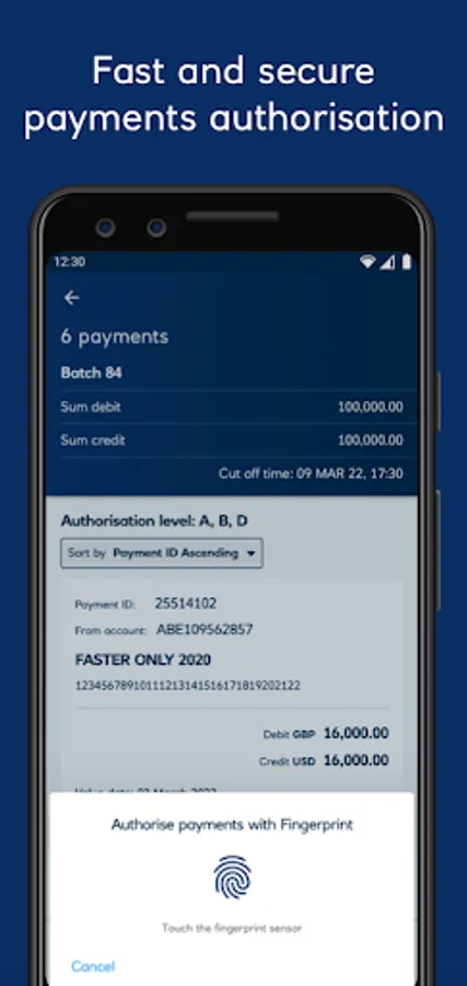 Protected by biometrics, our highly secure app lets you authorise batches of payments. From anywhere.