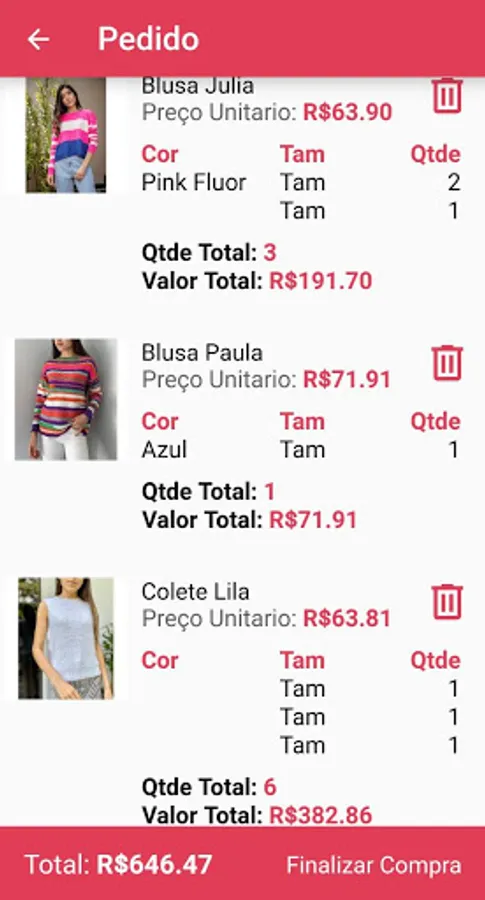 You can see the entire collection of each manufacturer with: Photos of the collection, Colors, Sizes, Wholesale and Retail Values, Shipping Values, Payment Methods and you can now automatically send your order to the store's whatsapp.