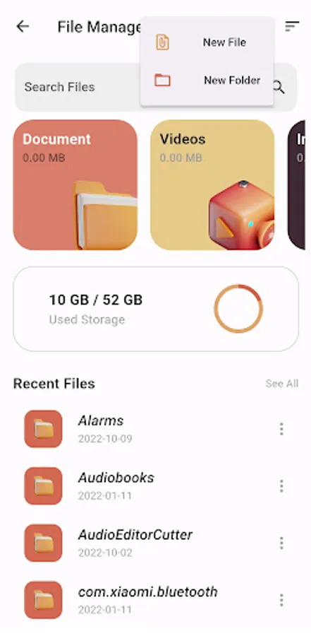 Our app also includes a powerful search function, allowing you to quickly find files by name, type, or date modified. You can also filter files by size, making it easy to find large files that are taking up too much space on your device.