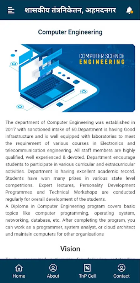 The institute has excellent infrastructure, well equipped laboratories, training and placement cell, class rooms, girl’s and boy’s hostel. The institute has a team of highly qualified, experienced and dedicated faculties and non-teaching staff devoted to achieve excellence in every activity of the institute. Apart from regular curriculum, the institute takes care of cocurricular and extra-curricular activities to build its student ‘a complete engineer’. The positive efforts taken by institute will help to achieve the vision of the institute and make our students globally competitive, employable engineers.
