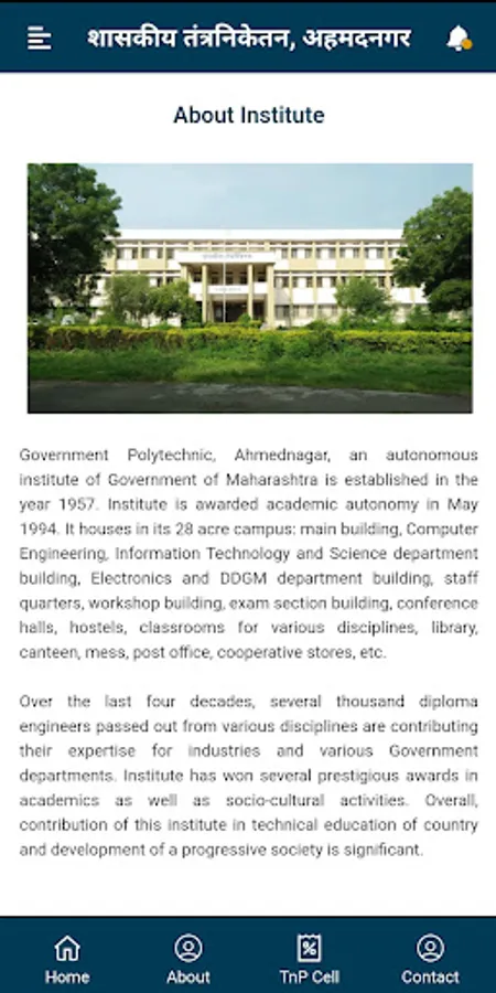 Government Polytechnic, Ahmednagar established in 1990 and affiliated to MSBTE, had celebrated silver jubilee in 2014. The institute is approved by All India council for Technical Education (AICTE) New Delhi and is affiliated to Maharashtra State Board of Technical Education (MSBTE).
