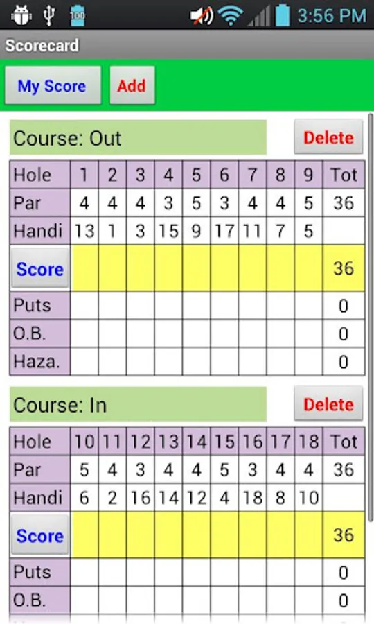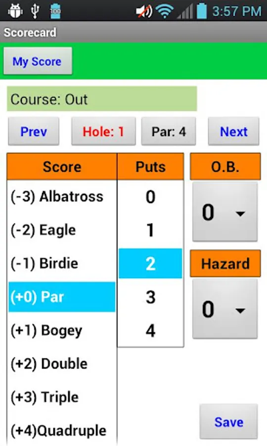 *Select/Modify Club *Scorecard/Input Score *Select Hole
