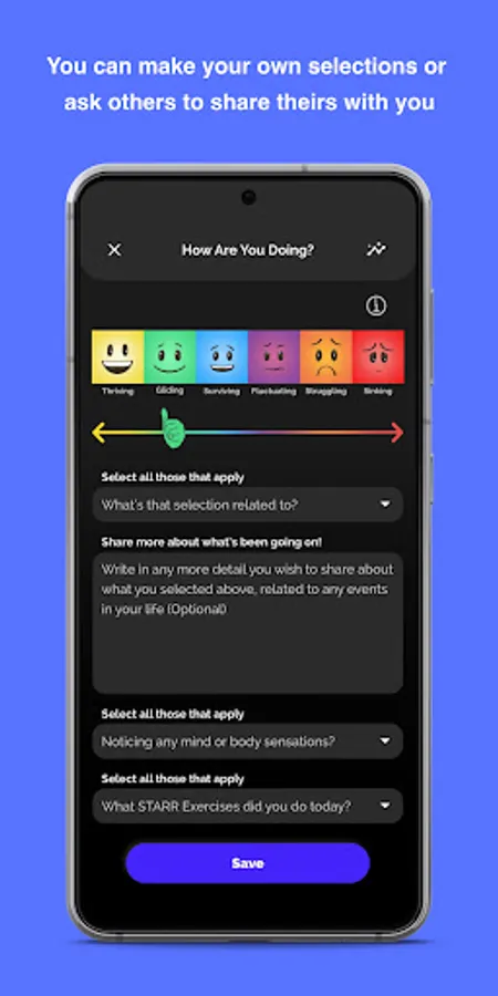 * Users may also choose to mark and track their own Scale responses - where you can mark how you are doing, even before you are comfortable sharing this information with others
