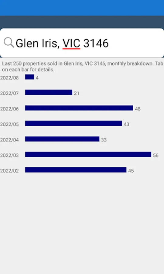 Provide monthly breakdown for properties sold lately in any specific suburb and give you insight of the market conditions.