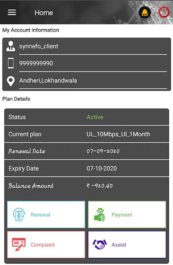 ⌑ Bill payments: View your bills and pay online. If you want to pay in cash, raise a request for payment pickup and we will collect the payment from you at your convenient time.