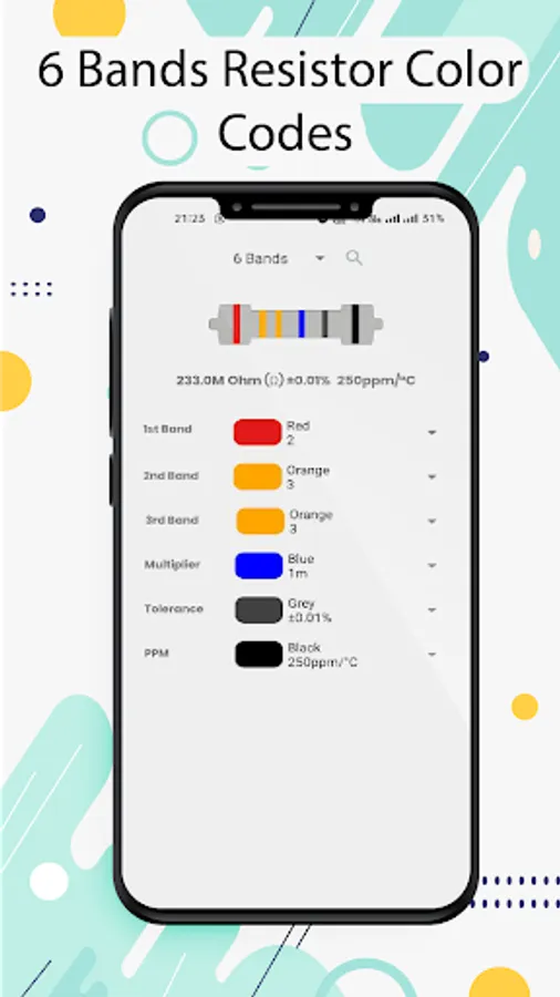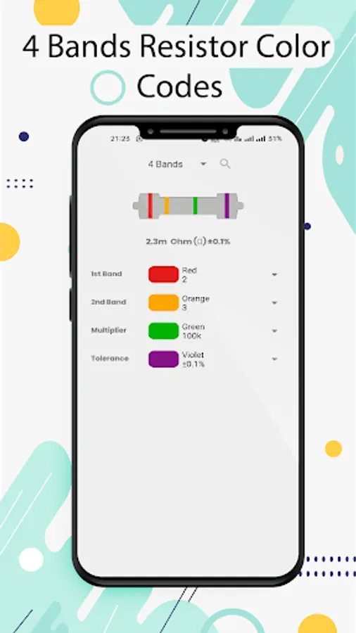 The resistor Color Code Calculator provides a very simple and efficient way to calculate resistor color code values. The best app to use resistor color code calculator for all resistors.