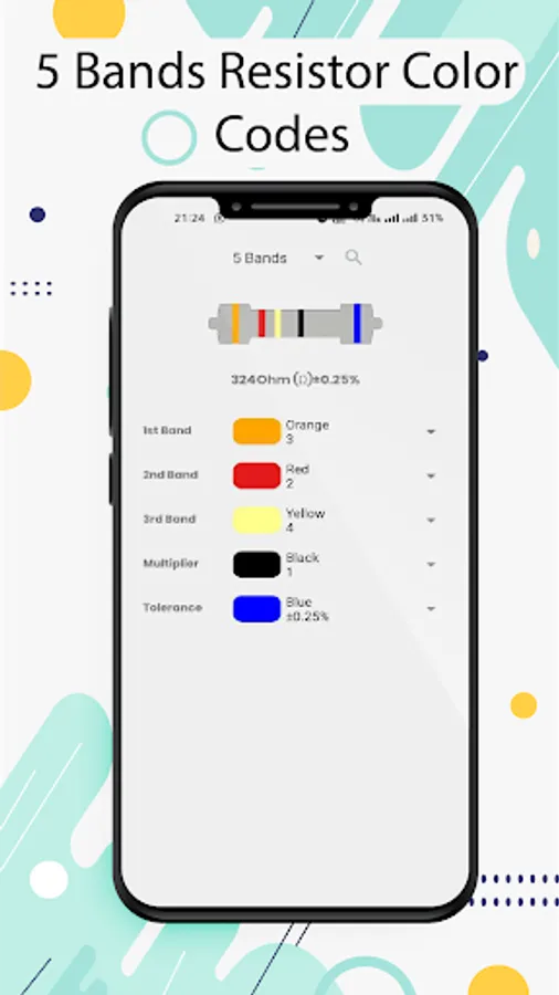 All Bands resistor color code calculator helps you to search the resistance values of all bands. Resistor Color Code Calculator supported all three, four, and five bands resistors
