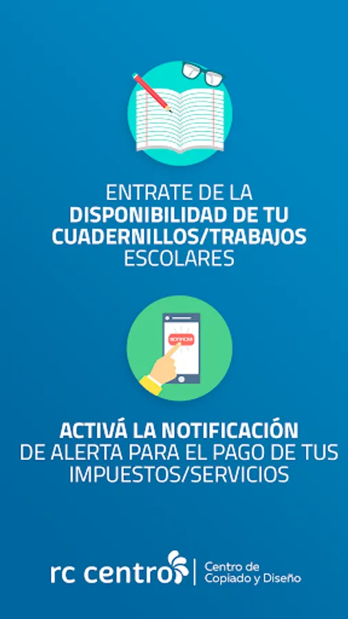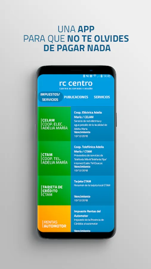RC Copy Center came in the form of APP. We offer you a new service so you do not forget anything. In it you will find the expiration dates of each tax or service that you must pay and activate the notification, it will remind you of the due date so that you do not forget the payment date.