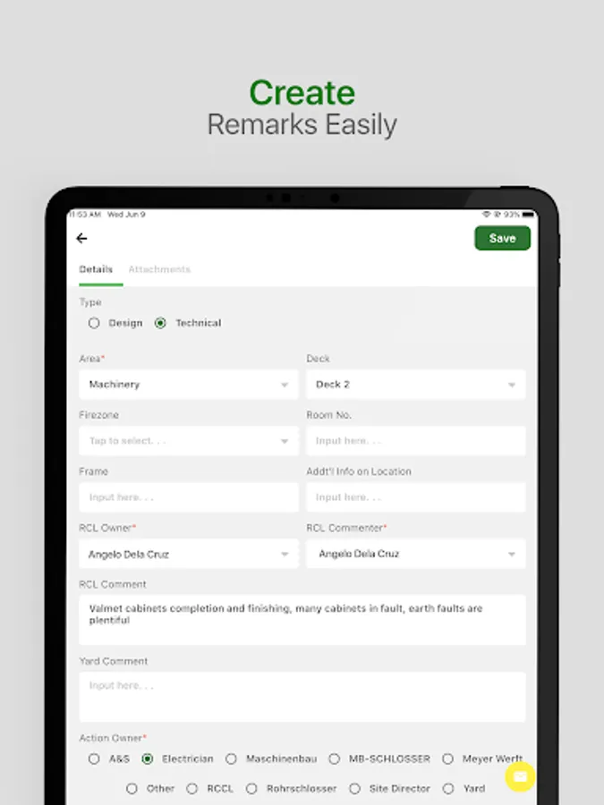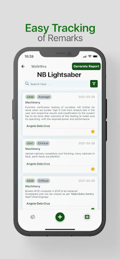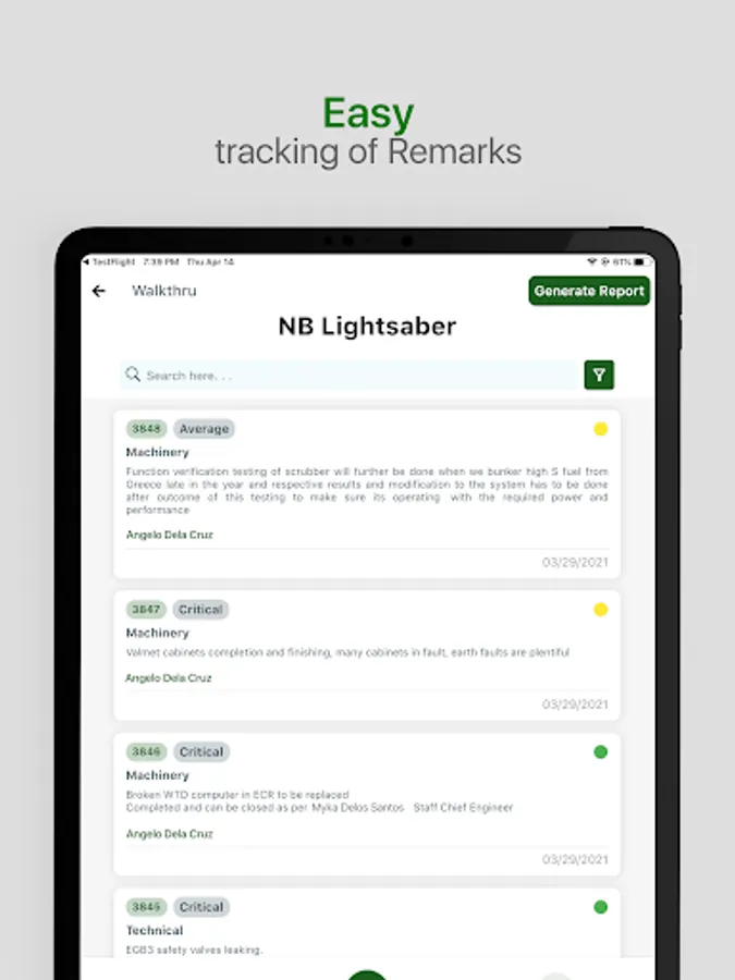 - Indicate safety issues when walking onboard on the iPad choosing the category associated and attaching the pictures