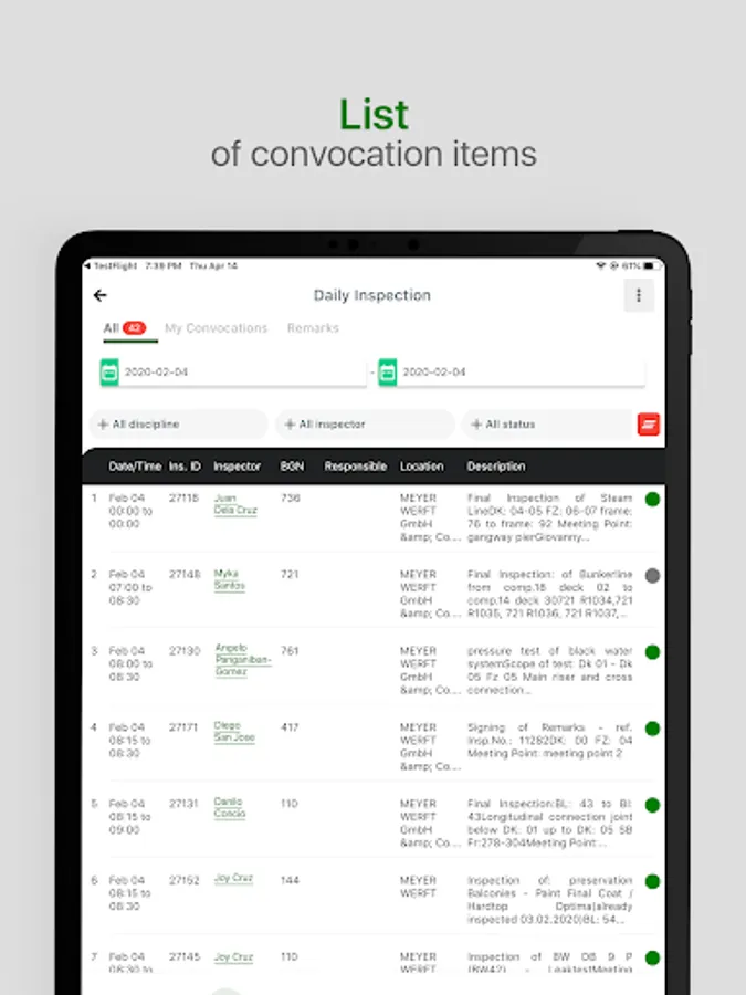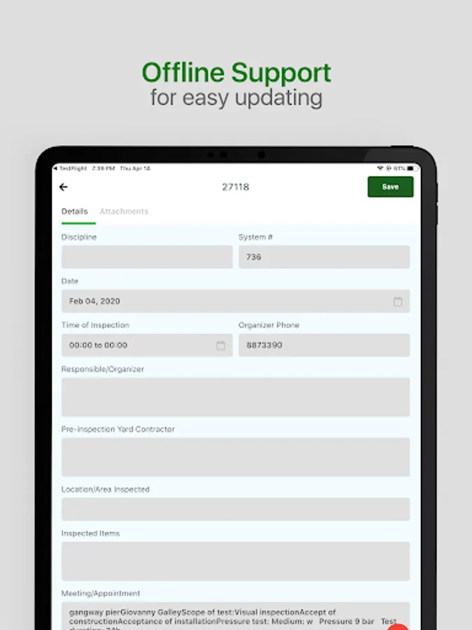- Implement meeting/inspection data and attachment in Winspect on a daily basis
