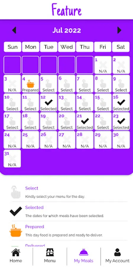 Feature is a Kuwait-based company that has taken an initiative to provide healthy and hygienic food in Kuwait. The app has many features which keeps customer up to date with their diet food cycle.