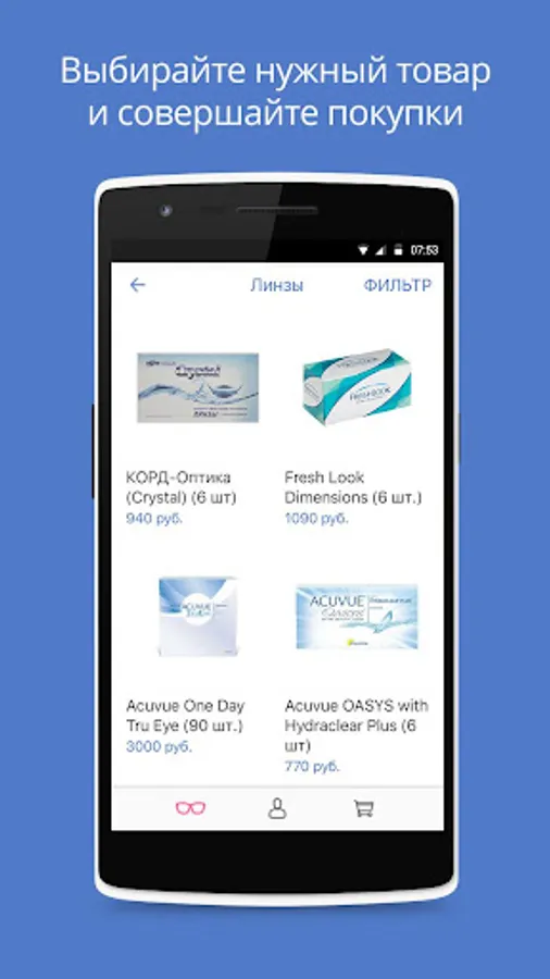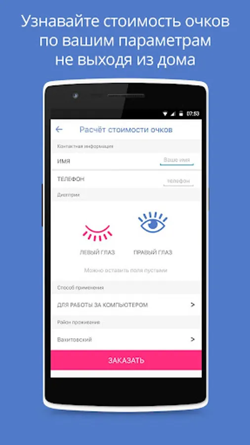 Setting "Reminders" - one of the advantages of the application, which eliminates the need to control the timing of replacement or purchase of a new package of contact lenses.