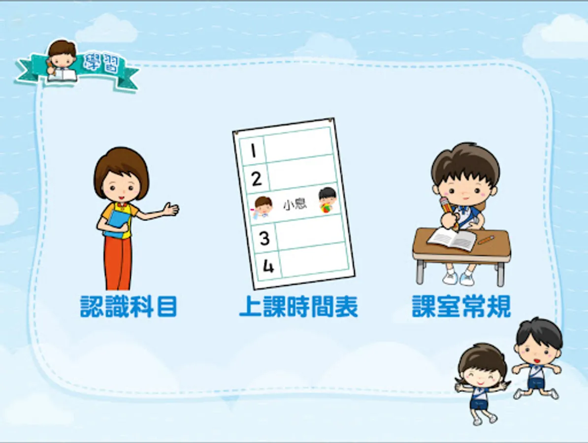 The Rhenish Church Grace School is a school for children with moderate intellectual disabilities. It is committed to serving children with special educational needs and providing them with comprehensive learning packages. Our school has seen that many organizations have also produced some adaptation materials for entering primary schools, but the content may not be suitable for all students with special educational needs. In view of this, our school is determined to produce a set of adaptation materials for students with special educational needs to prepare for primary school. Our school has also successfully applied to the Children’s Commission for subsidies from the "Child Welfare and Development Funding Scheme" to implement it. Sub-plan. Information technology has been frequently used in education in recent years, and e-learning has become more popular. Many studies have also proved that e-learning can enhance students’ learning motivation. Therefore, our school has produced this electronic application. It is expected that students can use the instant feedback function in the application in an interactive and interesting way to learn, understand the life patterns and related emotions of elementary schools, and help students to adapt to entering elementary school. Prepare to meet the new school life.