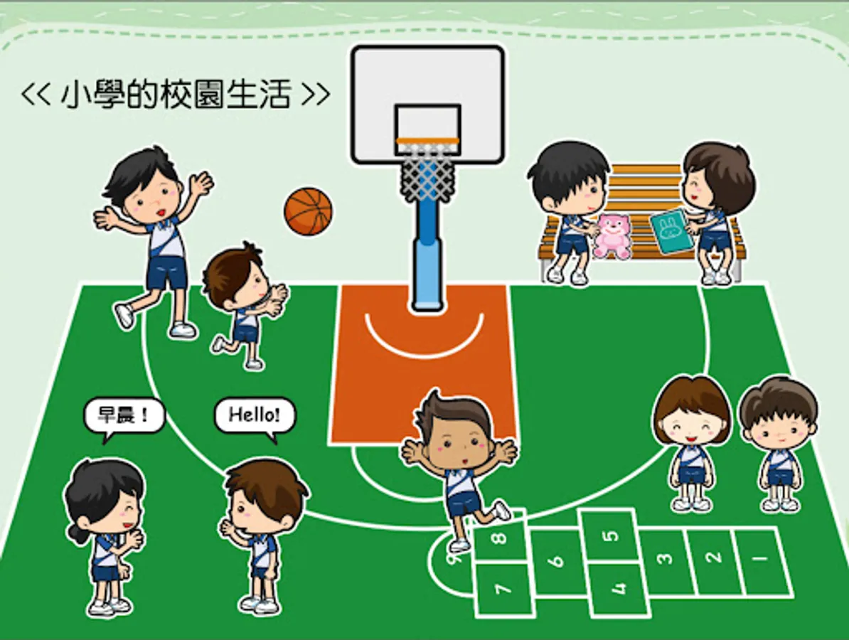 Learning is an indispensable part of campus life. There are two games in this part, namely "knowing subjects" and "class timetable". There is also a story "knowing routines". We will work with students to learn about common subjects, school day schedules and classroom routines in elementary schools, so as to help them understand the school life in elementary schools.